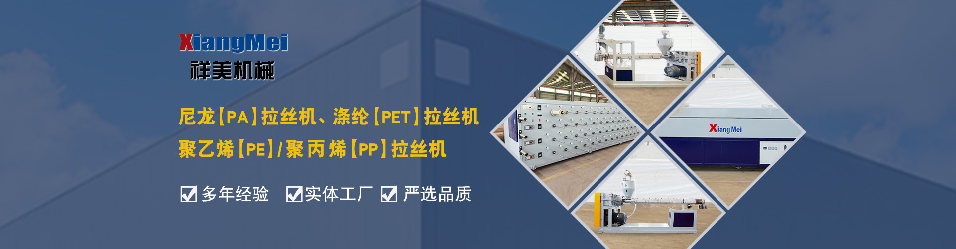 我公司是一家具有30多年專業(yè)生產(chǎn)塑料拉絲機(jī)的企業(yè),作為國(guó)內(nèi)最早生產(chǎn)圓絲塑料拉絲設(shè)備的企業(yè),成為國(guó)內(nèi)同行競(jìng)相爭(zhēng)仿的標(biāo)桿,公司產(chǎn)品主要可以生產(chǎn)聚乙烯(PE)、尼龍(PA)、聚丙烯(PP)、滌綸(PET)等作原料拉絲機(jī)設(shè)備及其配套設(shè)備、鉛芯機(jī)設(shè)備及其配套設(shè)備,拉絲機(jī)設(shè)備主要生產(chǎn)的產(chǎn)品有單絲、復(fù)絲、扁絲、刷絲、草坪絲、拉鏈絲、割草線等各類線絲,公司產(chǎn)品在國(guó)內(nèi)同行業(yè)中性價(jià)比高、有良好的口碑,曾獲“國(guó)家高新技術(shù)、新產(chǎn)品博覽會(huì)金獎(jiǎng)”被輕工部定位替代進(jìn)口產(chǎn)品、國(guó)家級(jí)新產(chǎn)品,并多次獲得省、市科技進(jìn)步獎(jiǎng),產(chǎn)品遍布全國(guó)大部分地區(qū),并遠(yuǎn)銷日本、意大利、俄羅斯、韓國(guó)、印度、澳大利亞、印度尼西亞、墨西哥、菲律賓、泰國(guó)、朝鮮、巴基斯坦、烏茲別克斯坦、越南、馬來西亞、老撾、越南、坦桑尼亞等國(guó)家和地區(qū)。 公司實(shí)行現(xiàn)代化企業(yè)管理,始終秉承以科技為先導(dǎo),制造為基礎(chǔ),管理為核心的企業(yè)面貌,運(yùn)用先進(jìn)的生產(chǎn)設(shè)備,創(chuàng)新的思維理念,確保產(chǎn)品多樣化、系列化,高品質(zhì),把誠(chéng)信、責(zé)任、創(chuàng)新作為祥美人不斷的追求的目標(biāo),為新老客戶打造高品質(zhì)的拉絲設(shè)備。 公司位于黃海之濱、亞歐大陸橋東橋頭堡的海濱城市——連云港,這有海陸空便捷的交通網(wǎng)絡(luò)、風(fēng)景秀麗的山海風(fēng)光,總經(jīng)理江中堯先生攜公司全體員工竭誠(chéng)歡迎各界人士、中外新老客戶來連洽談業(yè)務(wù)。